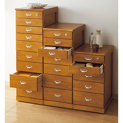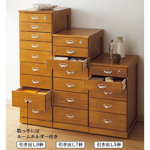 ブラウン (左から)D(5段)、E(7段) 散らかりがちな小物をすっきりとしまえる家具調の収納チェストです。