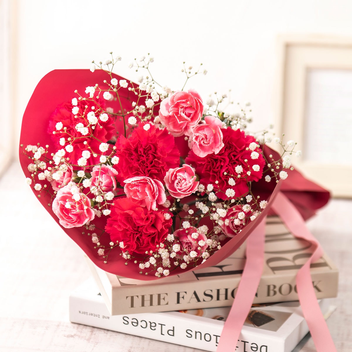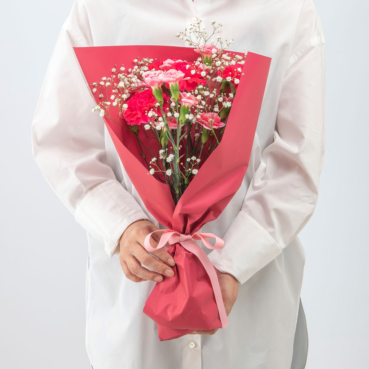 ■商品内容/カーネーション(濃いピンク×4)、スプレーカーネーション(複色ピンクホワイト×3)、カスミソウ×1、ラッピング、リボン、母の日カード、お手入れのしおり■サイズ(約cm)/長さ45●日本製【小型別配送】 【交換・返品不可】※沖縄県や一部島しょ部など配送上の都合によりお届けできない地域がございます▼生産・流通の状況により、一部の商品に使用される生花・造花、鉢、バスケット、ピック等につきまして、代替品にて制作、お届けをさせていただく場合がございます。見た目やデザイン性などを優先させていただき、お選びいただきましたイメージを大切にして制作、お届けさせて頂きますので、何卒ご理解を賜りますようお願い申し上げます。