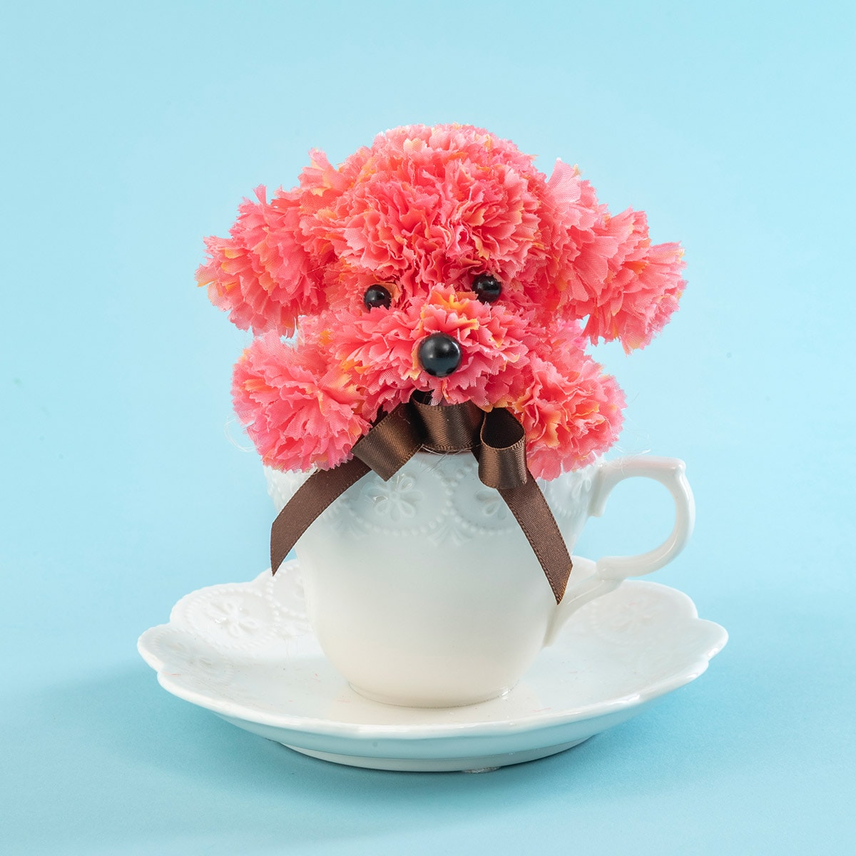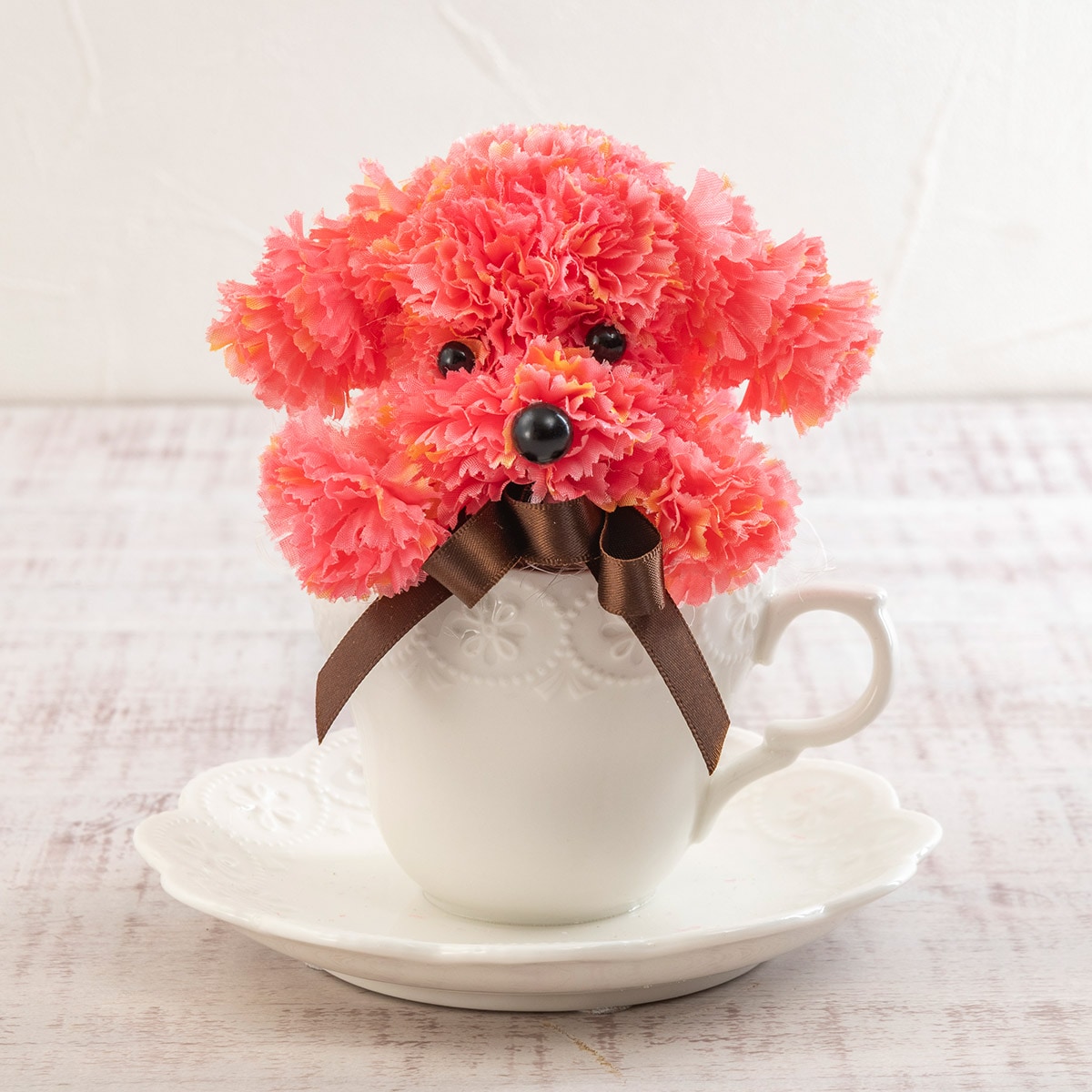 ティーカップからプードルがちょこんと顔を出してごあいさつ。キュートな顔に思わず笑みがこぼれます。【お届け】2026年5月6日(水)~5月10日(日)の期間にお届けします。