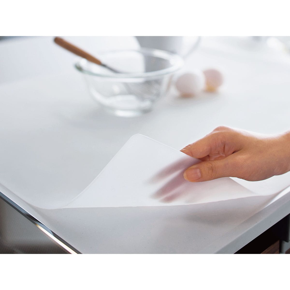 ソフトなシリコン素材の調理台マット。大きめサイズなので調理台をまるごとカバー。熱・汚れ・キズからキッチンを守ります。まな板のすべり止め、お鍋の一時置きにも便利!