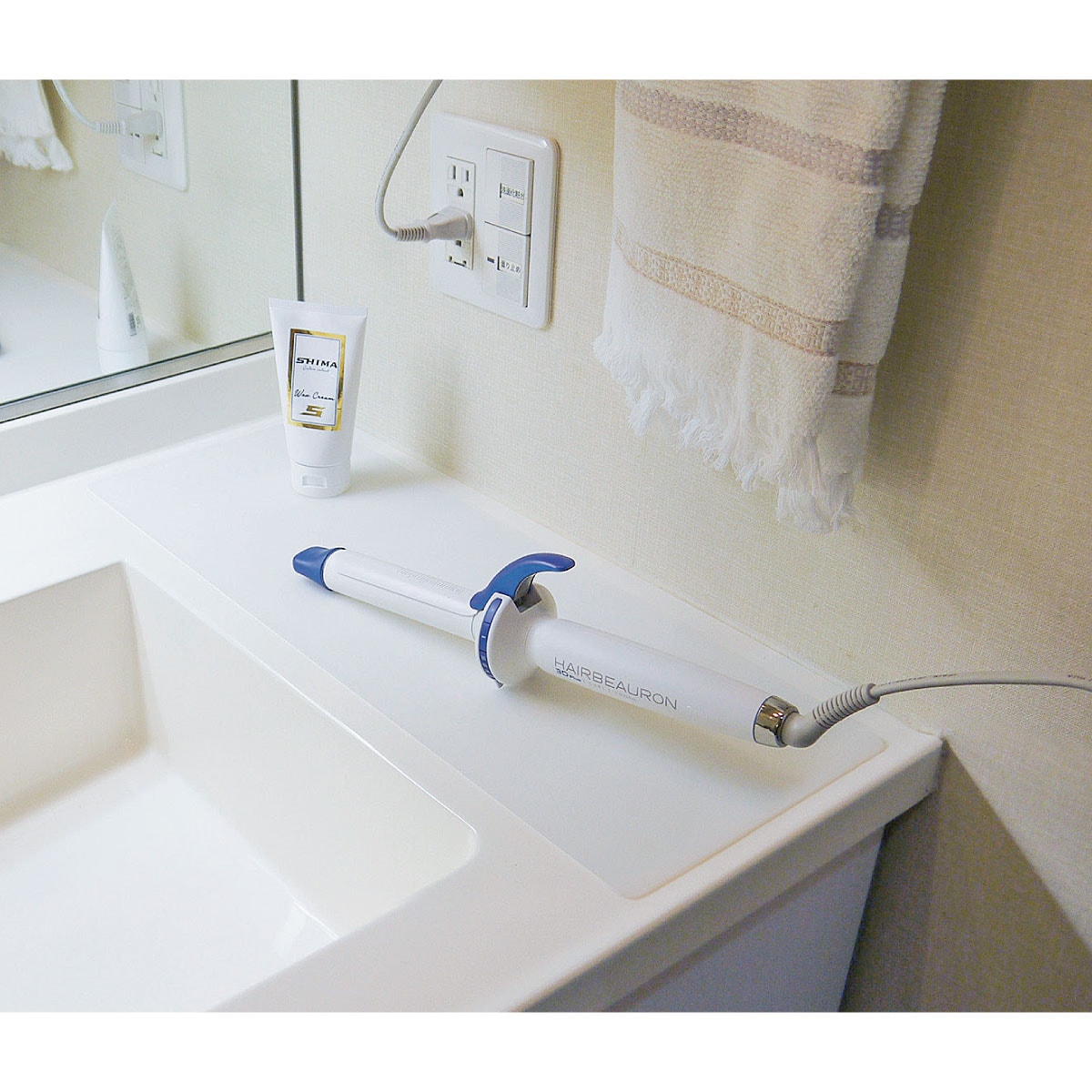 洗面台でのヘアアイロンの一時置きに。キッチン以外でも活躍します。
