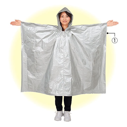薄くて軽くてあたたかいポンチョ型のブランケット。避難時の防寒対策はもちろん、アウトドアや寒いシーズンのスポーツ観戦など、持っていると何かと便利です◎