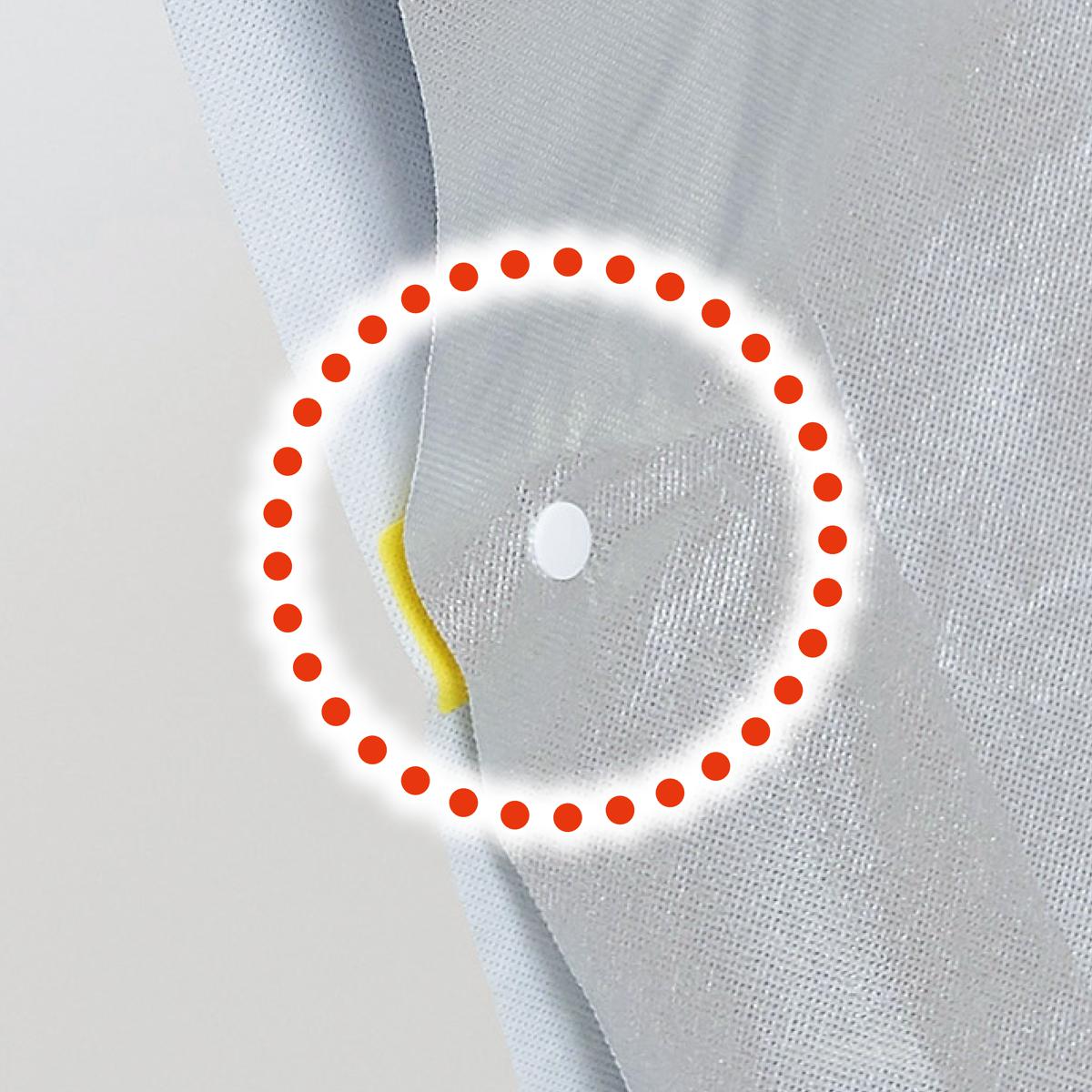 フード付きで頭・首筋もスッポリ!(1)袖口を固定できるスナップボタン