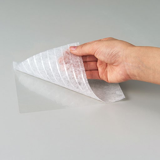 粘着タイプなので、剥離紙を剥がして、パッと貼り付けるだけ。(跡残りしにくいタイプの粘着剤を使用しています)