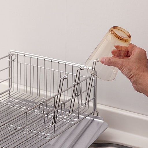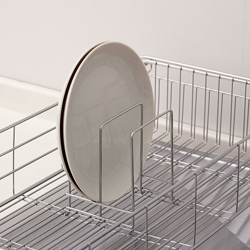 C(皿立て)水切りかごの中底のワイヤーに設置して使用できる皿立てオプションです。お皿を立てて置くことで、かごの中を効率よく使えます。