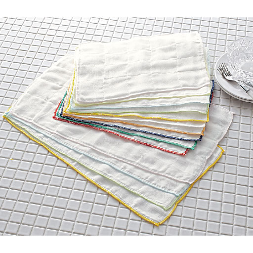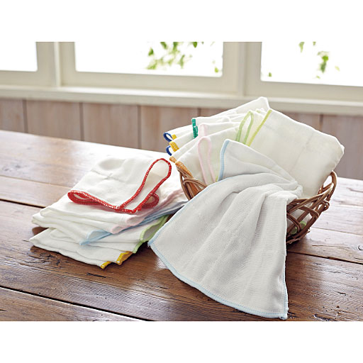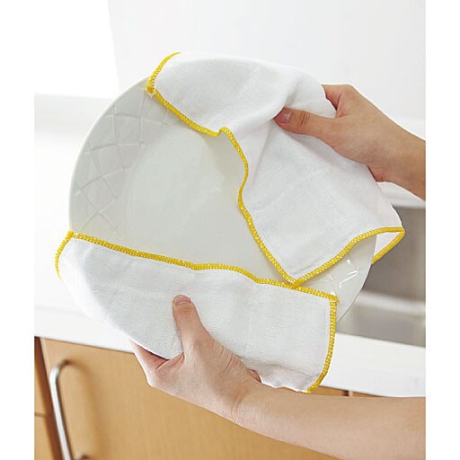 ほどよい厚みがあり、水や汚れをやさしく拭き取れるガーゼ素材を使用。ご要望にお答えして大判サイズをセットしました!食器拭きや台拭きなどさまざまに使い分けできます。