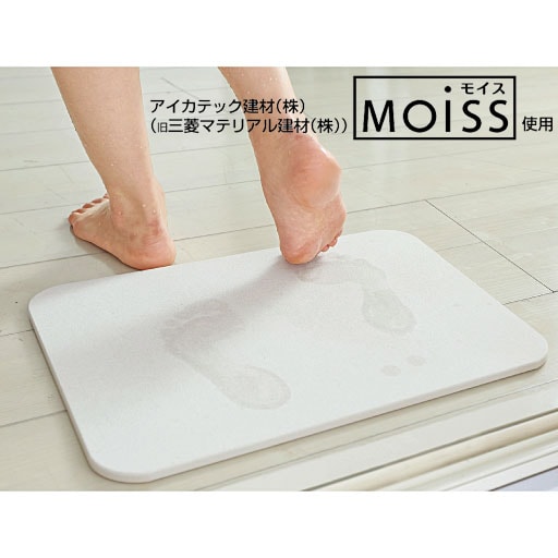 天然素材の力でみるみる水分を吸収し、濡れた足跡も残さず自然乾燥してくれる、人気の珪藻土バスマットです。カビも生えにくく、消臭機能付きで清潔に使えます。立てかけておくだけで乾燥するので、お洗濯の手間が省けます。「MOiSS(モイス)」とは、園芸などで土壌の改良に使用されている土の一種である「バーミキュライト」を主材にした素材。家具や建材の湿気取りとしても使用されています。和歌山県にある、水周りを中心とした生活用品を50年作り続けている会社「アイカテック建材(株)」で開発されました。