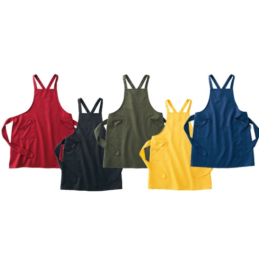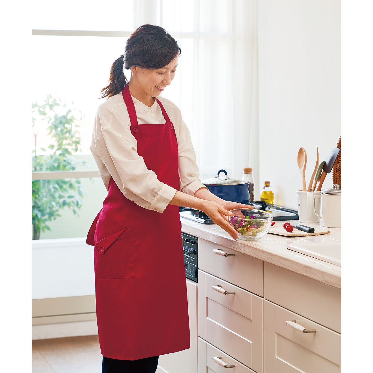 大人気の定番エプロンシリーズ!乾きやすい、ノーアイロンOK、丈夫なポリエステルのツイル生地です。家事や仕事がはかどること間違いなし!