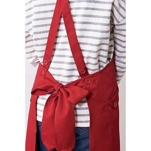 エプロンH型は、肩紐の長さを背中のボタンで調整できます。※バッククロスタイプです。