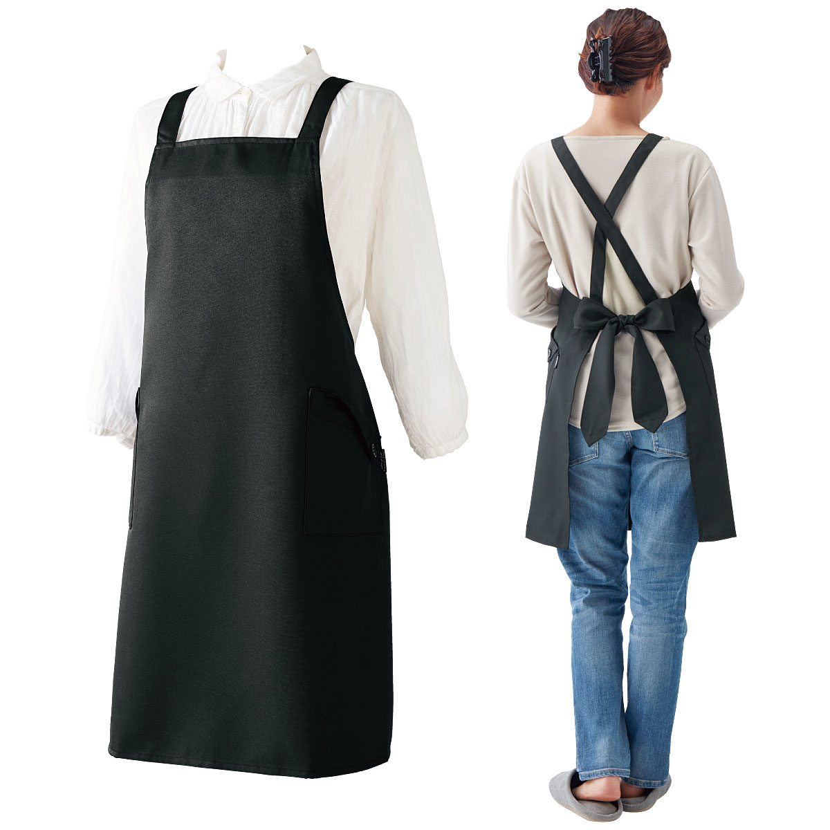 ブラック H型※前部分H型のエプロンです。バッククロスタイプ