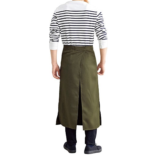 カーキギャルソンエプロン(ロング丈)バックスタイル
