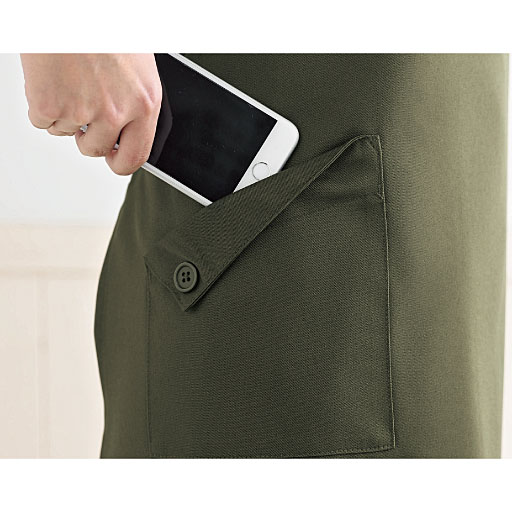斜めのポケット口で物を出し入れしやすいのが嬉しい!大きめのポケットだから、スマホやリモコン、家事や仕事の道具をスムーズに出し入れできます。