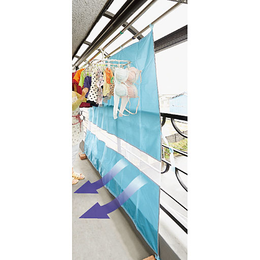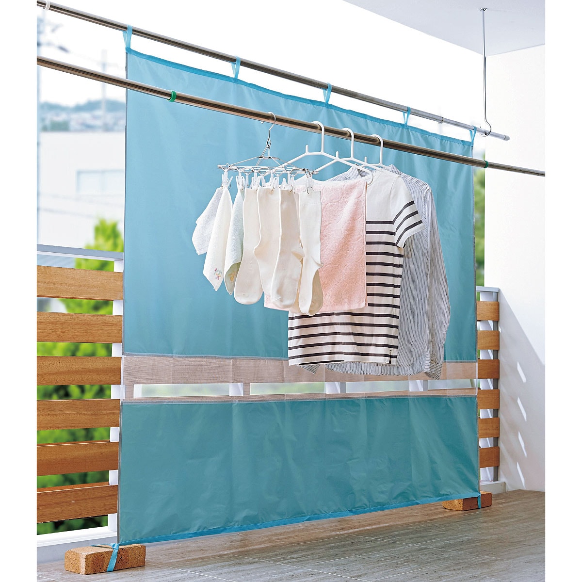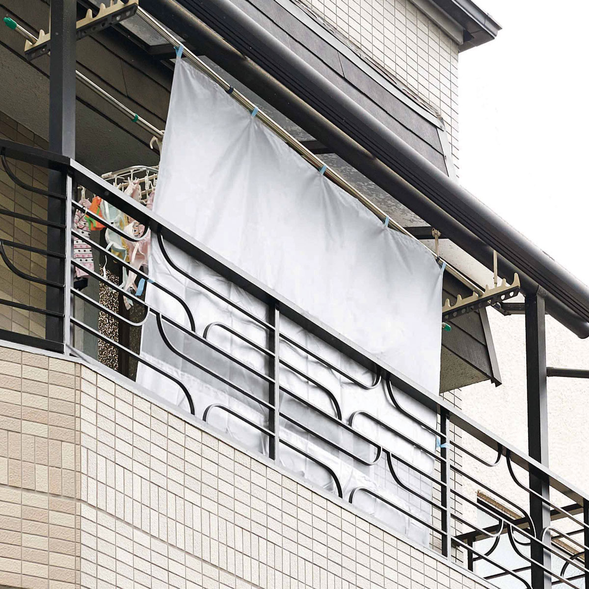 物干し竿に通してかけるだけ! 目隠し効果でプライバシーを守ります。室内の温度上昇・突然の雨対策・衣類の色あせ防止に!風を通すメッシュ生地。アルミコーティングで遮熱・UVカット効果!使わない時は束ねてコンパクトに収納できます。