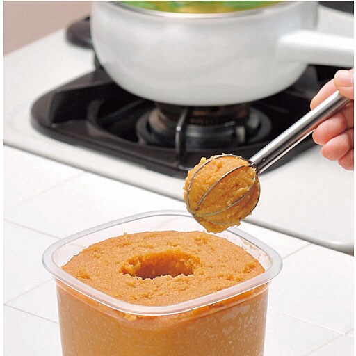 お味噌に差して、くるっと回すだけで簡単に計量できる便利なマドラー。そのままお鍋で溶かせるのでお味噌汁などを一定の味付けで作ることができます。塩分の取りすぎ対策にも。