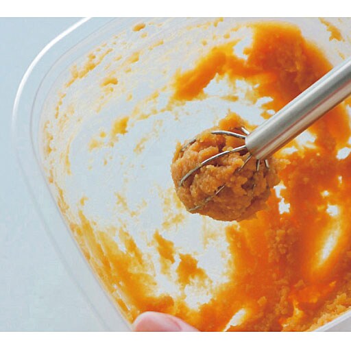 大小の丸い部分を味噌に差してクルリと回すだけ!簡単におみその計量ができ、そのまま鍋の中で味噌溶きとして使うことができます。ミニサイズのマドラーとして、卵溶きや調味料を混ぜる時にも便利に使えます。収納しやすいコンパクトサイズ。食洗機OKでお手入れも