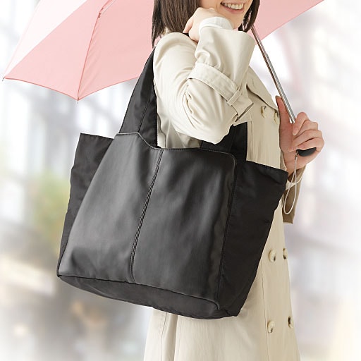 大きく開いて中が見やすく、A4ファイルもすっぽり入る多機能バッグ。計8個のポケットでたっぷり収納でき整理しやすい。ーデザインー内側は中が見やすい明るいブルー。ー素材特徴ー表面に撥水加工を施し雨の日にも安心。収納内部には防水生地を使用し、底部に傘が入ります。※折りたたみ時の長さが28cm以上の傘は収納できません。【軽量約270g】