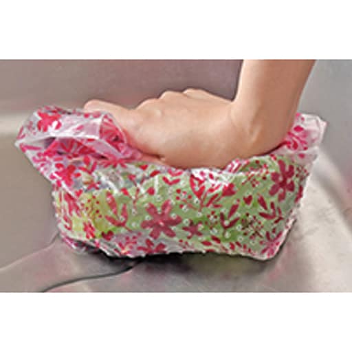 広げると自立するスタンドタイプ。丈夫な素材で、しっかり水を絞って捨てられます。キッチンが華やぐ草花柄です。