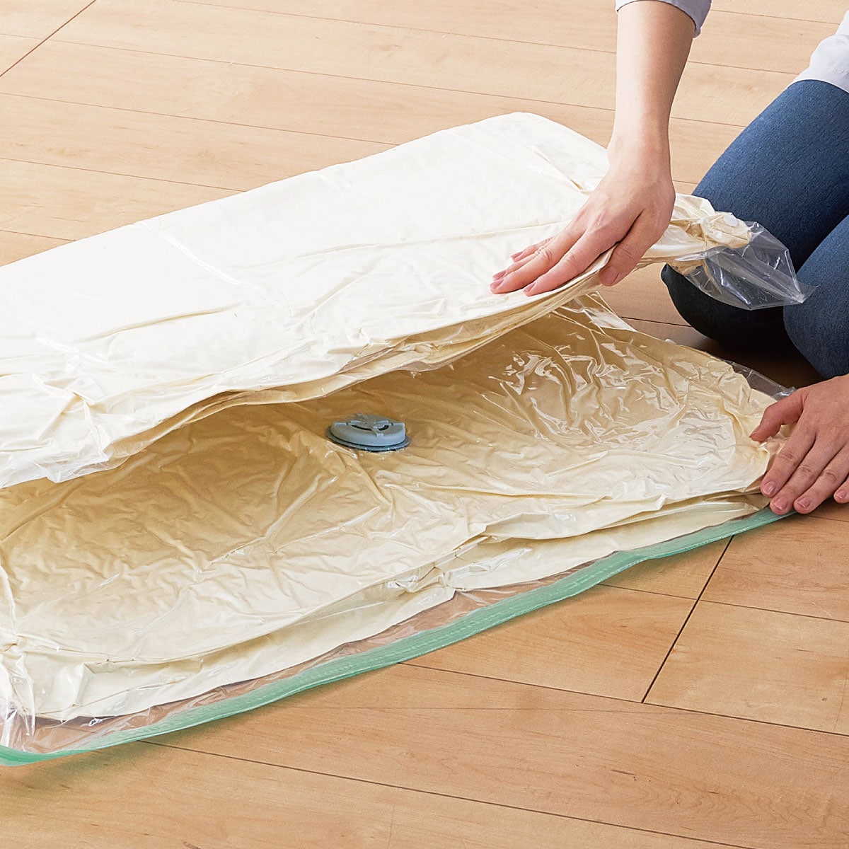 圧縮袋は繰り返し使えます!※写真はイメージです。布団の種類や材質により異なります。