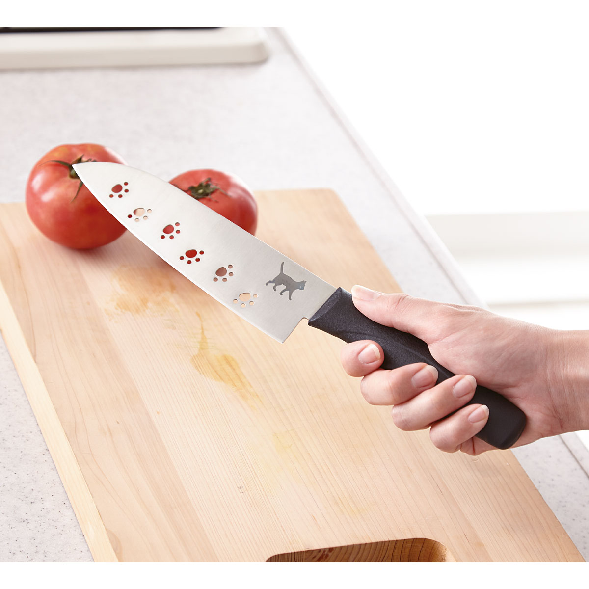 軽量穴あき包丁(猫の足あとシリーズ)