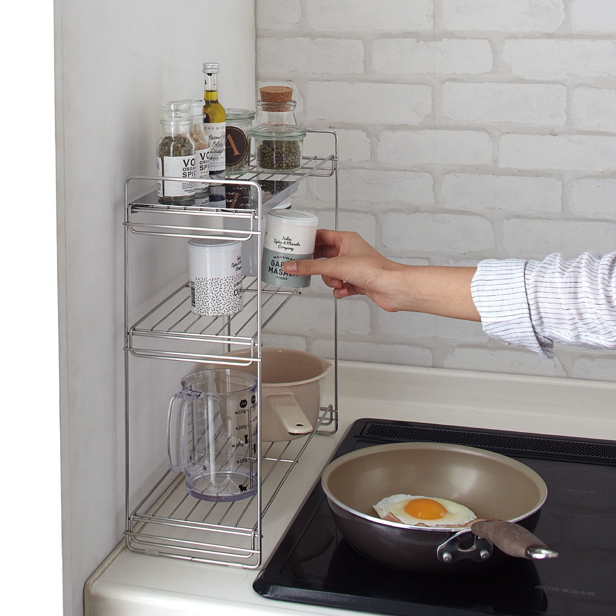 コンロサイドで使いやすいサイズです※3段は販売しておりません。