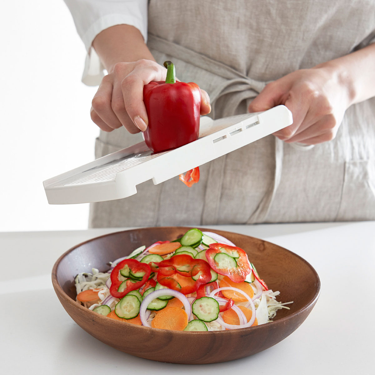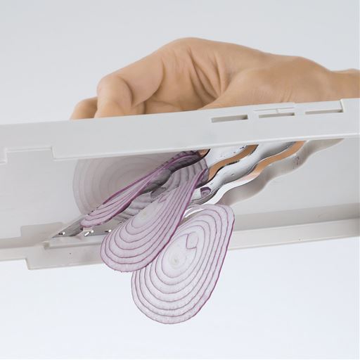 3枚刃で3倍の速さで食材をスライスできるスピードスライサー。