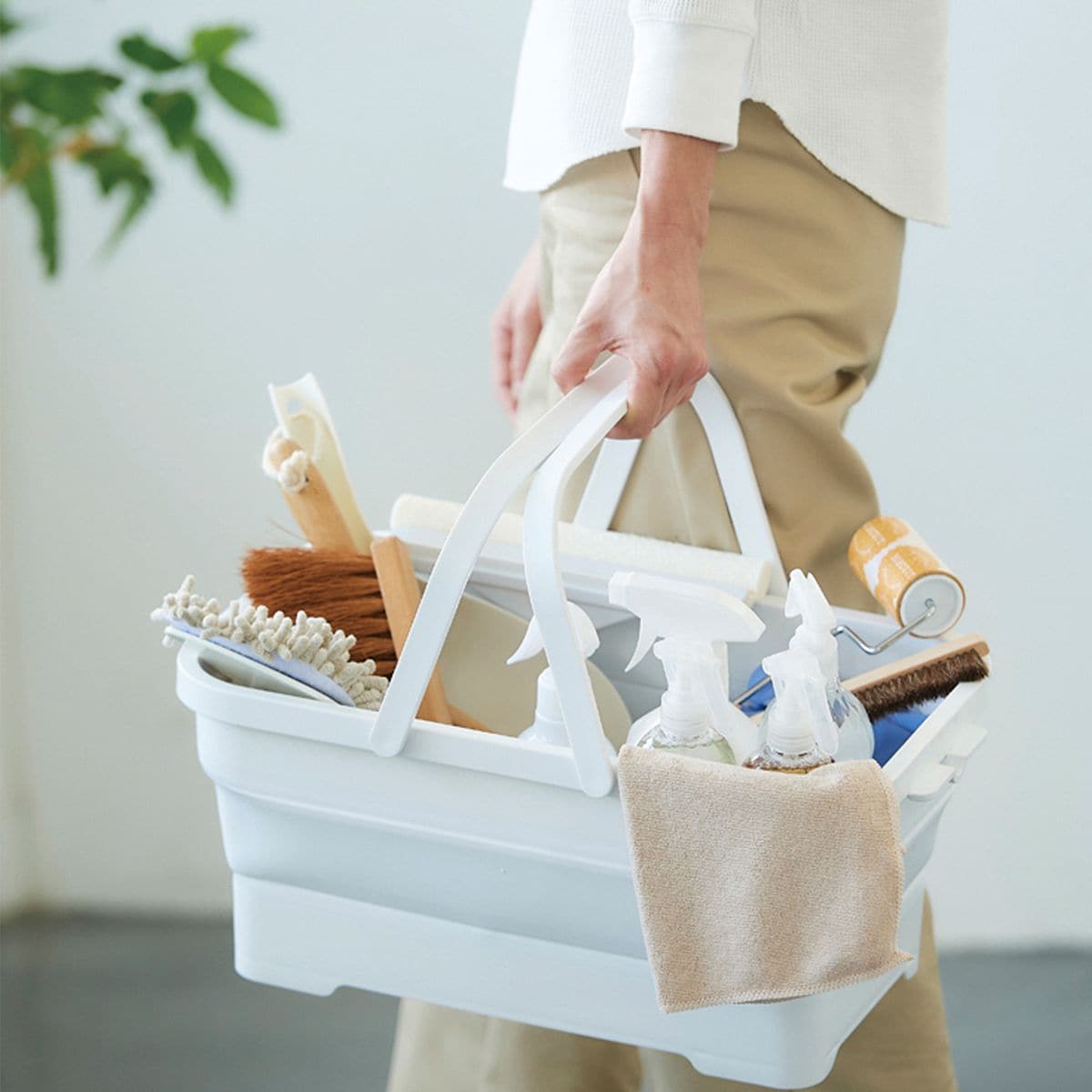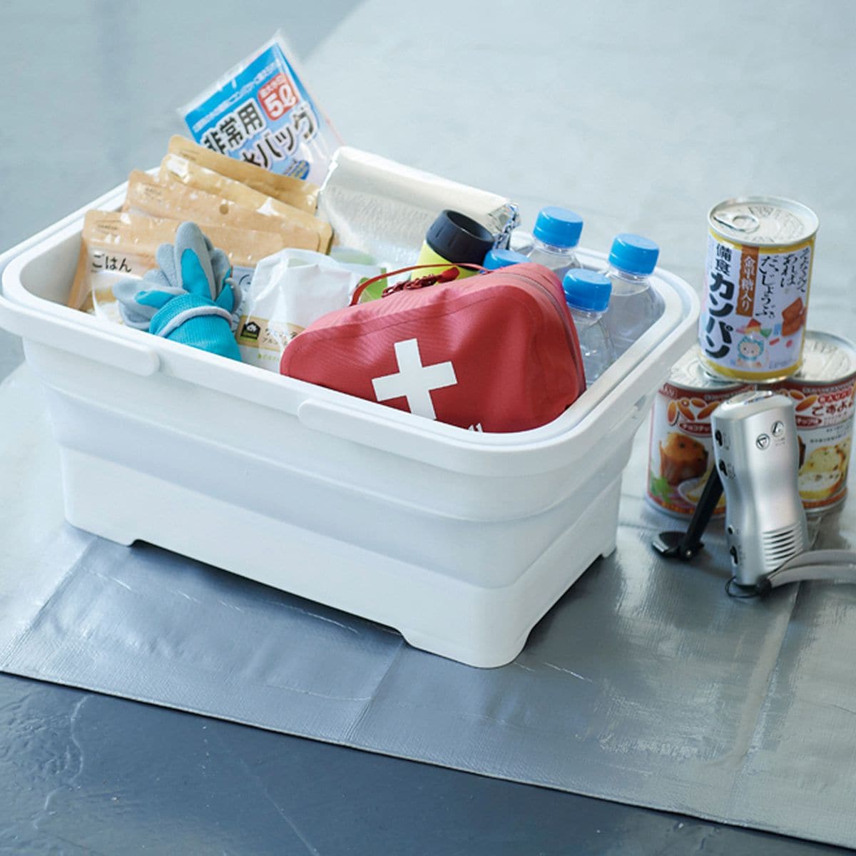 必要な時だけ広げて使える折りたたみ式のランドリーバスケット。洗濯はもちろんペットのお風呂や防災用のバケツ代わりにもおすすめ。