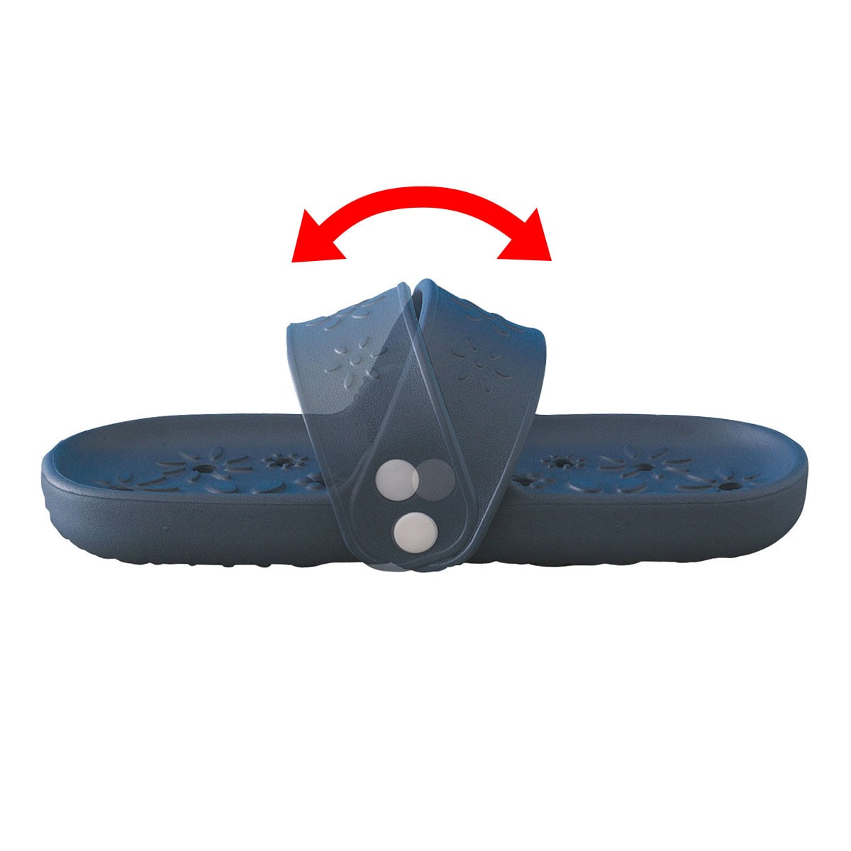 サンダルでベランダに出たときに、サンダルを揃えて室内に戻るのって面倒じゃないですか?かといって、そのまま脱ぎ散らかしたままだと次にベランダに出るときにイラっとしませんか。そんなお悩みを解決すべく開発されたベランダサンダル。サンダルはシンメトリー形状の上、アッパーストラップ(甲部)が可動式で履く側に広く傾きます。なので、サンダルの向きを気にせずどちらからでも履けるのです。ソール(底部)は水抜き穴が空いており、雨水が溜まりにくくなっています。