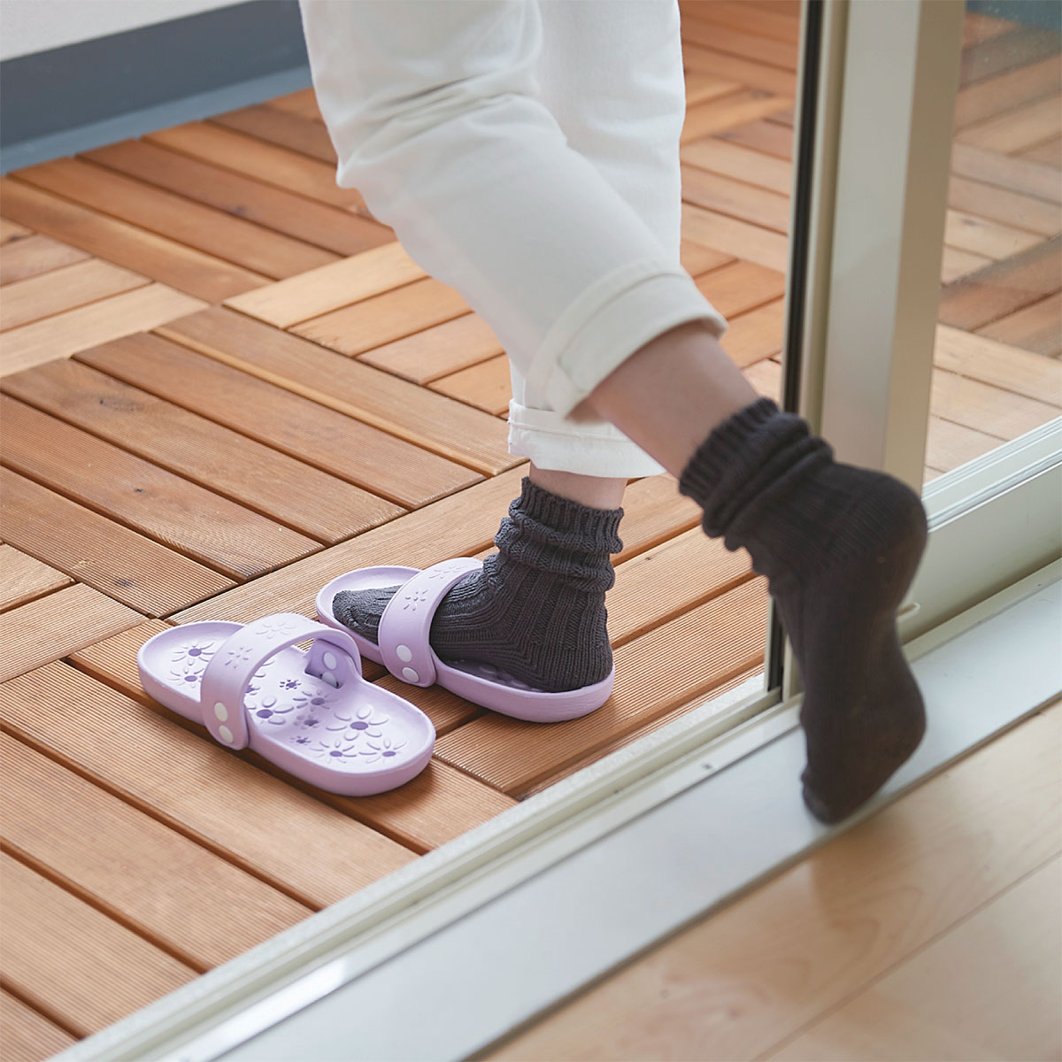 屋内に入るときも、そのまま。サンダルを揃えなおす必要なし。