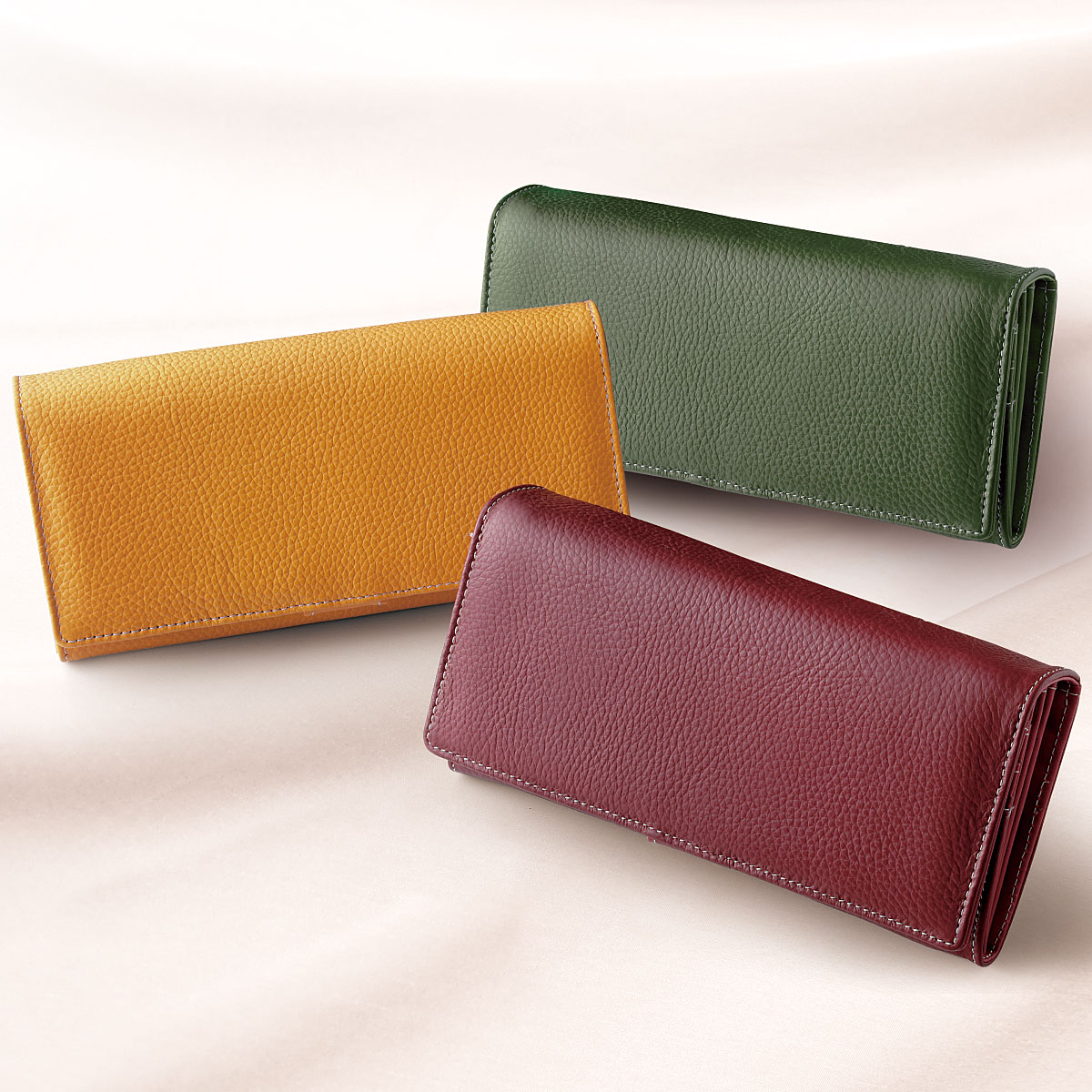 6つのコインポケットで小銭をすっきり仕分けるから支払いスムーズ!やわらかな肌触りのシボ入り牛革長財布