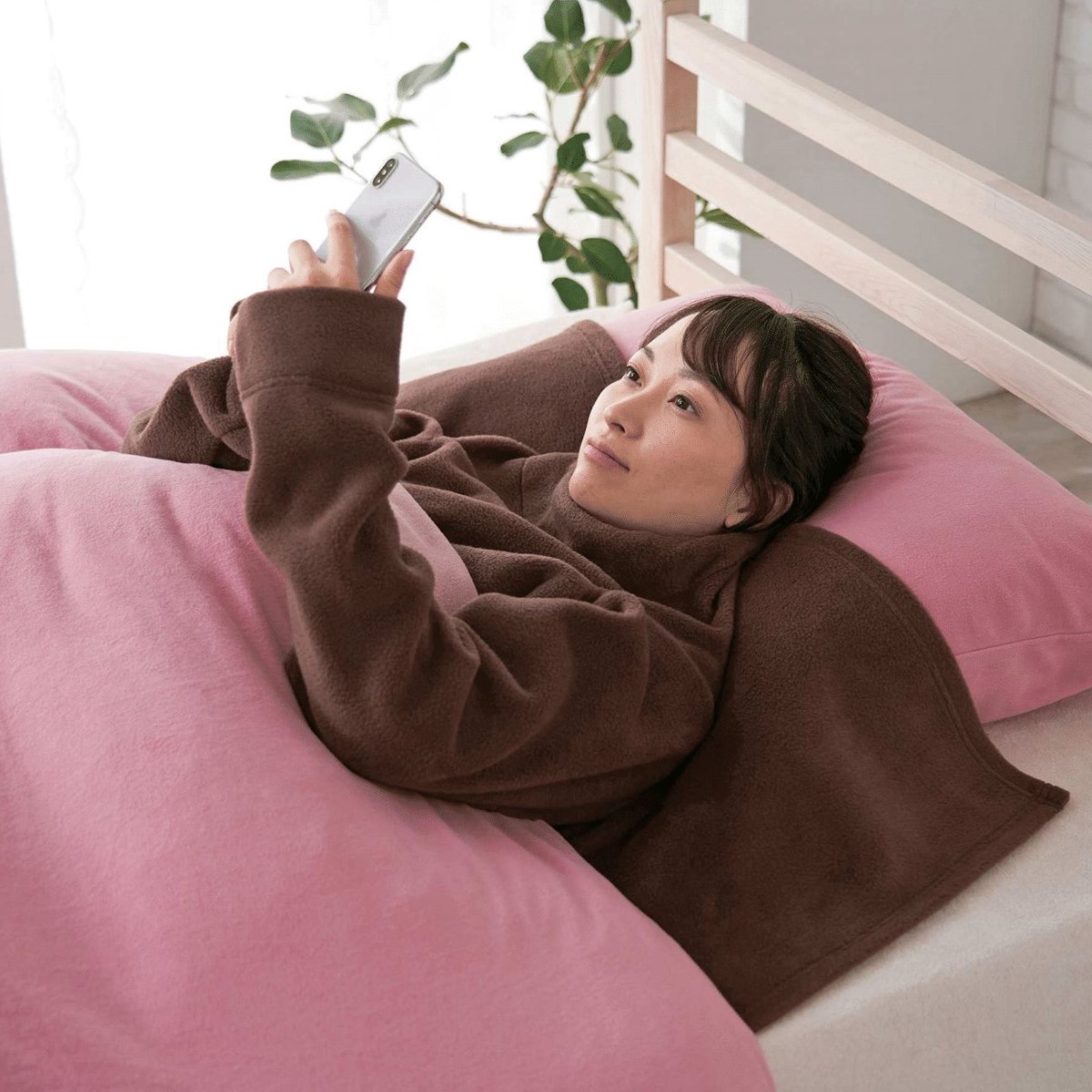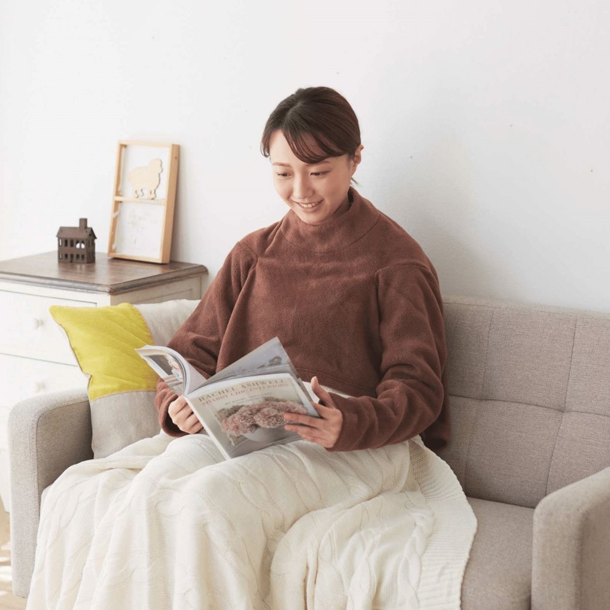 腕を通して寝れば、冷えが気になる肩や腕を冷気からブロック。着るタイプなので寝ている間にズレにくく、朝まで快適。寝る前のスマホや読書の時に!朝になると肩や腕が冷えてる方におすすめです。