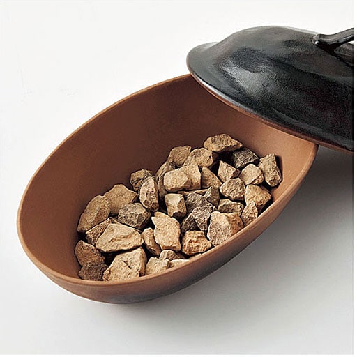 ■耐熱陶器 ■サイズ(約cm)/22.6×14×13(持ち手含む) ■重量(約g)/[本体]770 [専用石]300(1袋あたり) ●付属品/専用石×1袋 ※手作りのため、色味やサイズが多少異なる場合がございます。●日本製