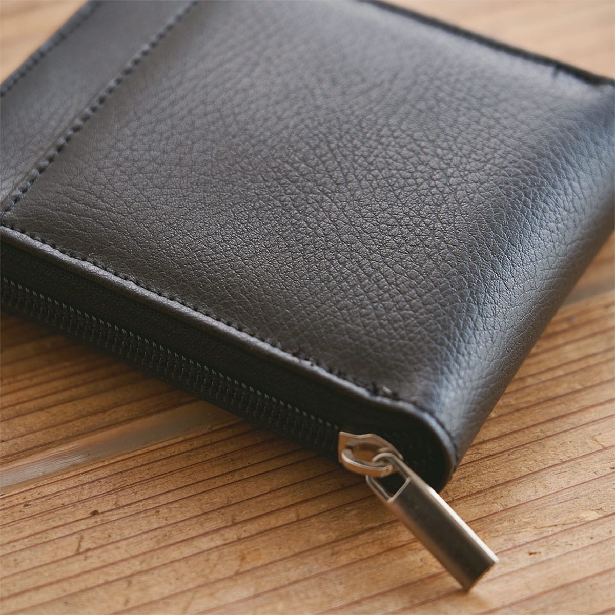 コンパクトサイズで使い勝手の良い2つ折りラウンドファスナー式のウォレット。男女問わずご使用いただけます。ーデザインーコンパクトなのに収納力はたっぷりで、コロンと可愛いスタイルが魅力です。大きく開く小銭入れ、9個のカード入れなど、機能性も申し分なし。外側には、交通系ICカードやポイントカードなどよく使うカードを収納するのに便利なポケット付き。