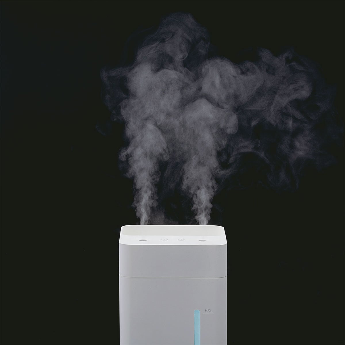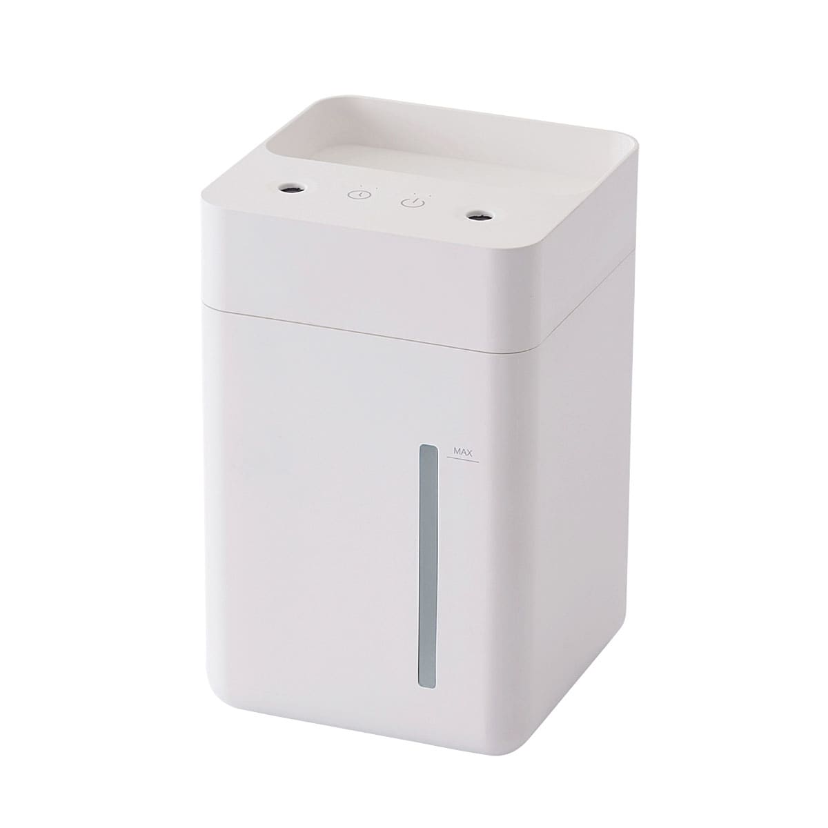 ダブルスチームなのでコンパクトながら加湿量は十分!加湿量は2段階で調整できます。スチームが熱くならない超音波式。