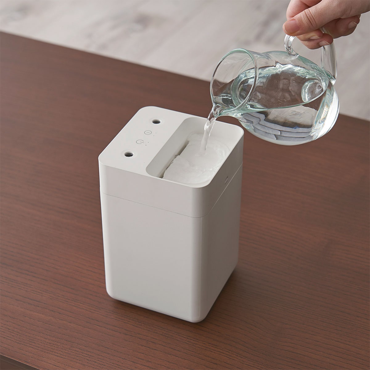 コードレスで使えるコンパクトな加湿器。2つの噴霧口から出るパワフルなミストが、潤い空間を演出します。