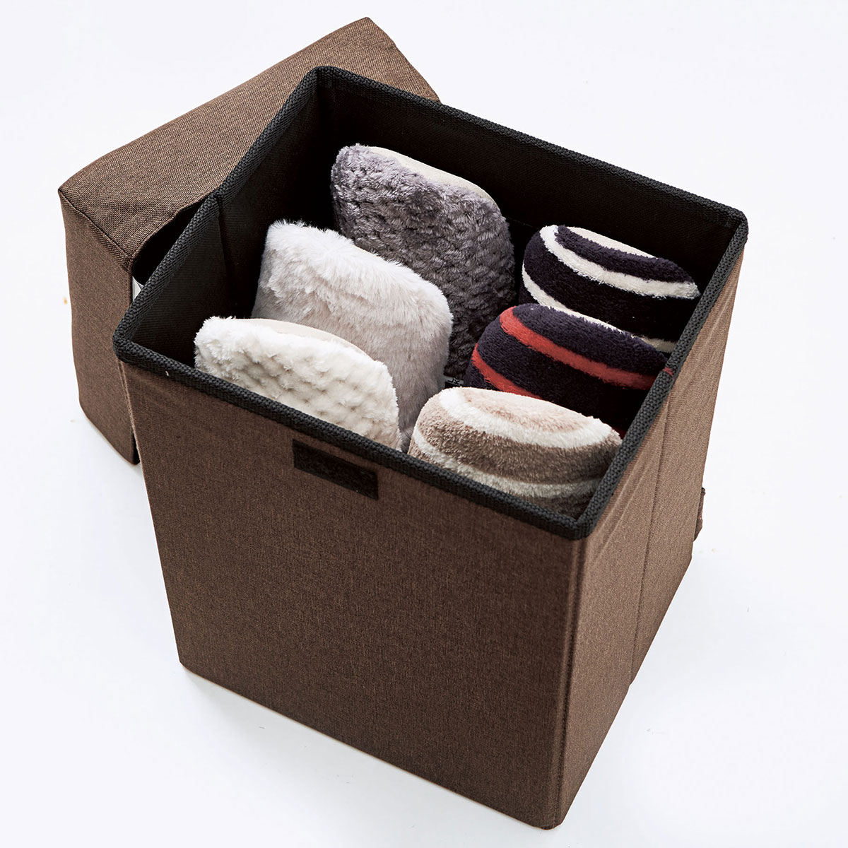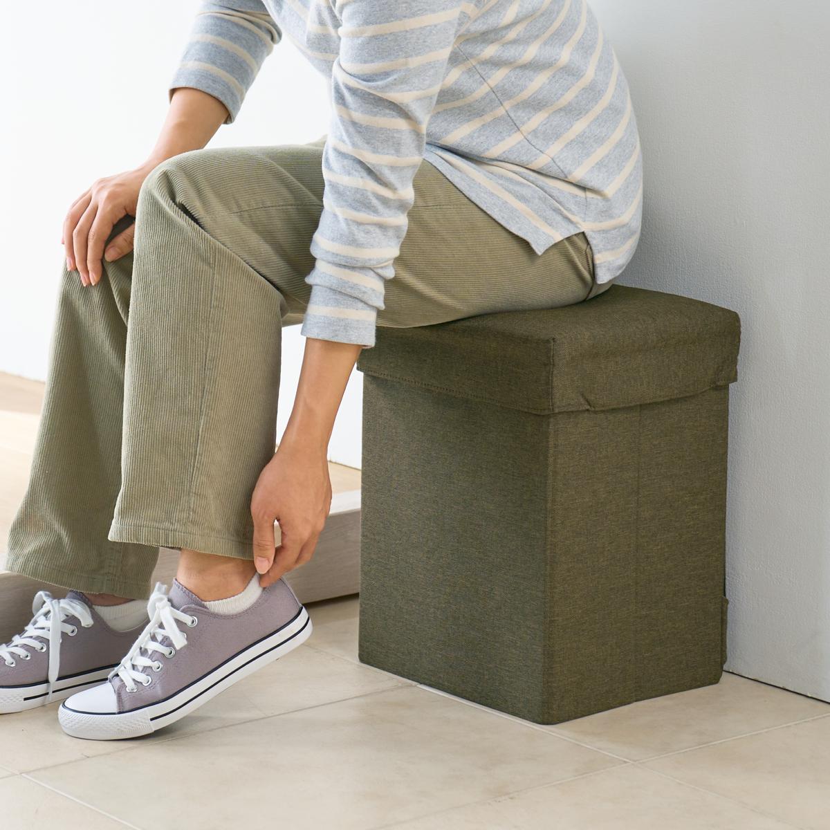 ■[本体]合板、紙 [側生地]ポリエステル、ポリプロピレン(不織布) [ベルト]ポリプロピレン [クッション材]ウレタンフォーム ■サイズ(約cm)/29×24×高さ38(組立時) ■重量/約1.5kg ■耐荷重(約kg)/[収納]8 [座面]100 ●セット内容/本体、底板●ベルト取り外し不可(約50~68cmで調整可能)●中国製
