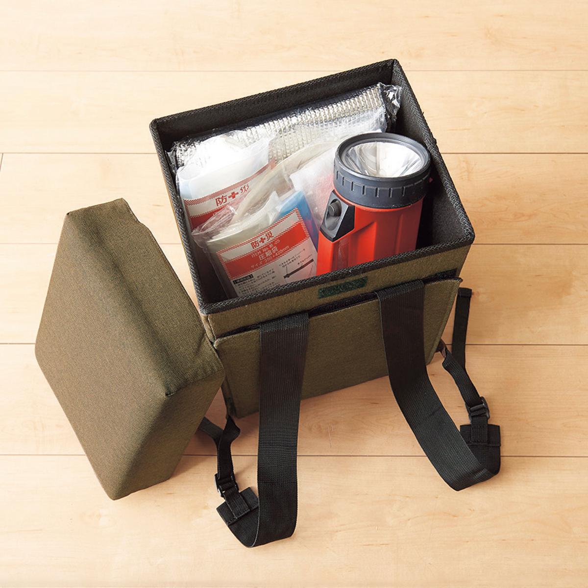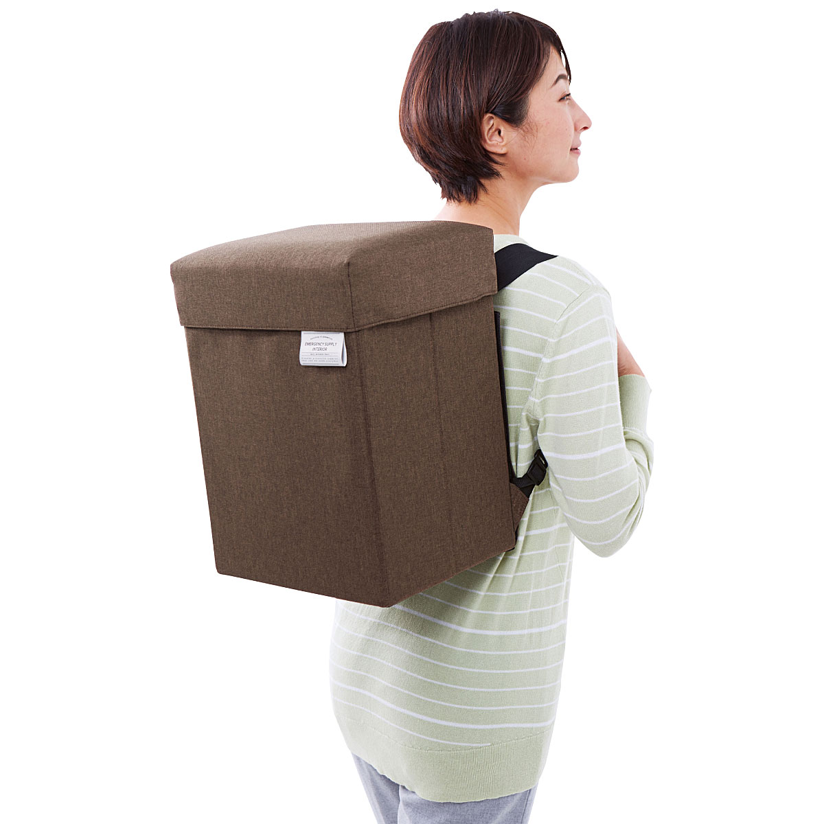 いつもは玄関用スツールチェア、非常時は防災リュックに早変わり!