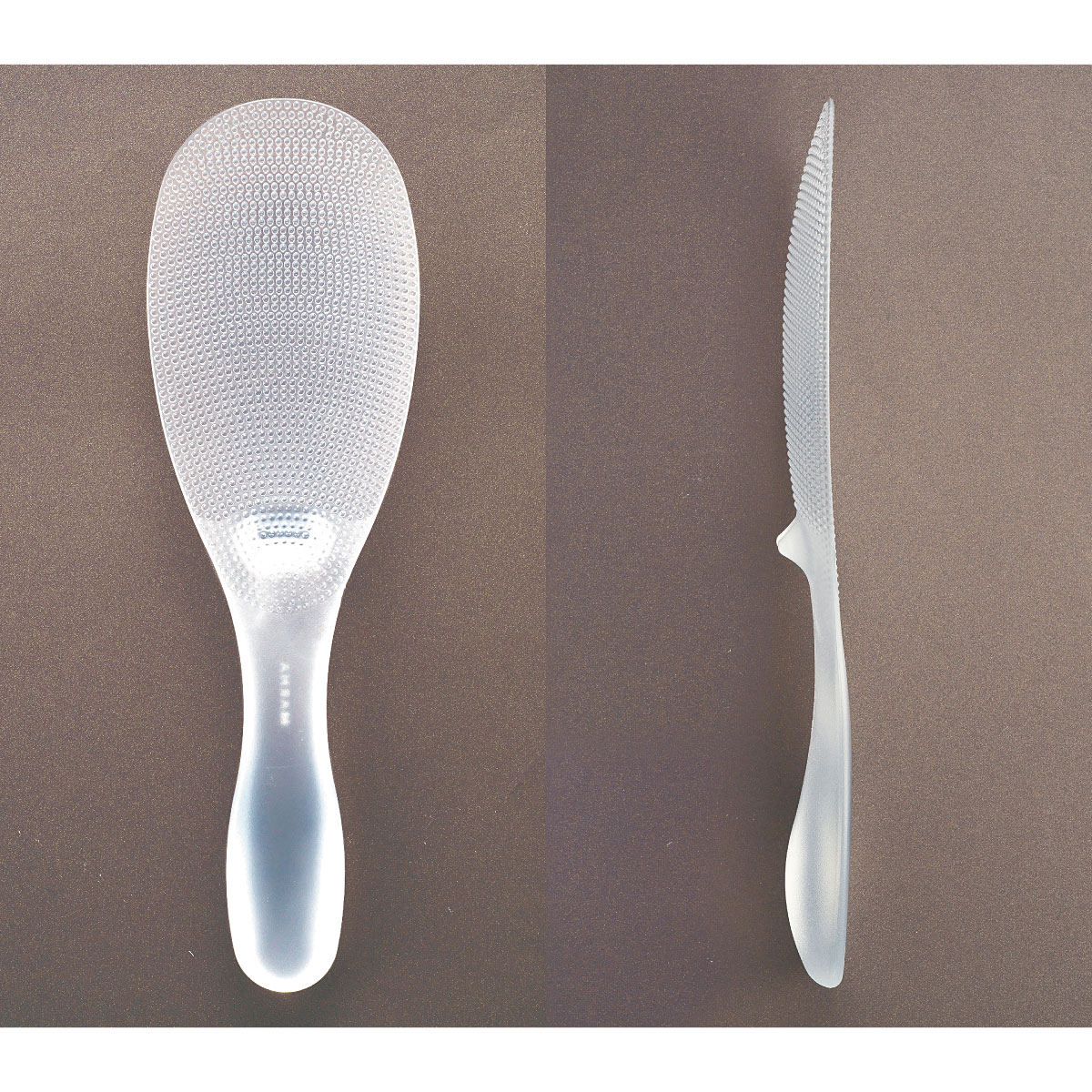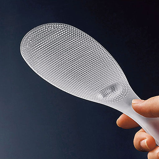 ごはん粒をつきにくくしたしゃもじ。剥離性の高い素材と、エンボス加工で炊き立てご飯をすっきりシャリ切りできます。