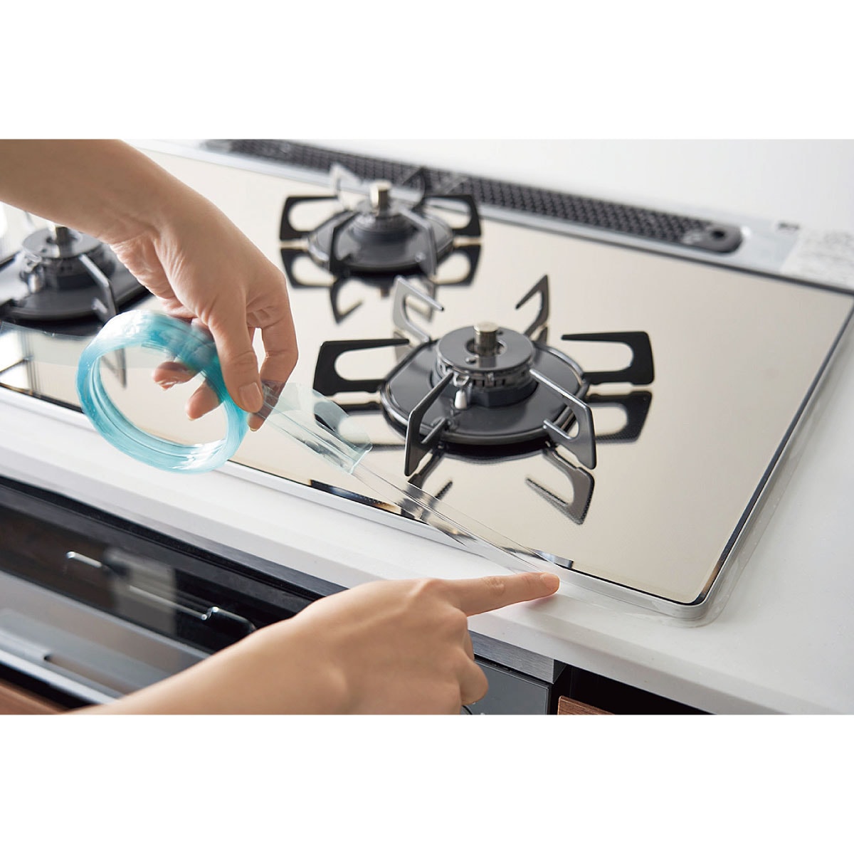 ■[本体]アクリル系エラストマー [スクレーパー]ポリスチレン ■サイズ/[本体]幅1.5cm×長さ2.5m [スクレーパー]長さ7cm ■取付可能サイズ/コンロ幅約75cmまでのコンロに対応 ■耐熱温度/110℃ ▼凹凸のあるカウンター表面や、汚れが付きにくい表面が加工されたものには取り付けできない場合があります●日本製