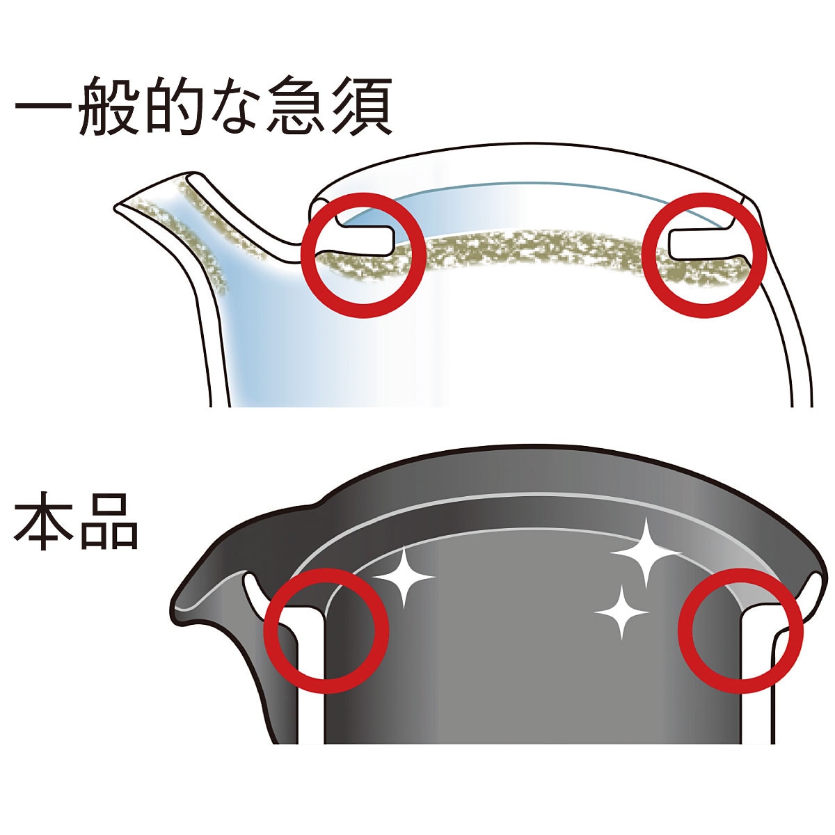 ふた置き部分と注ぎ口は、段差がなくて洗いやすく、清潔さを保ちやすい仕様です。 ※イメージ
