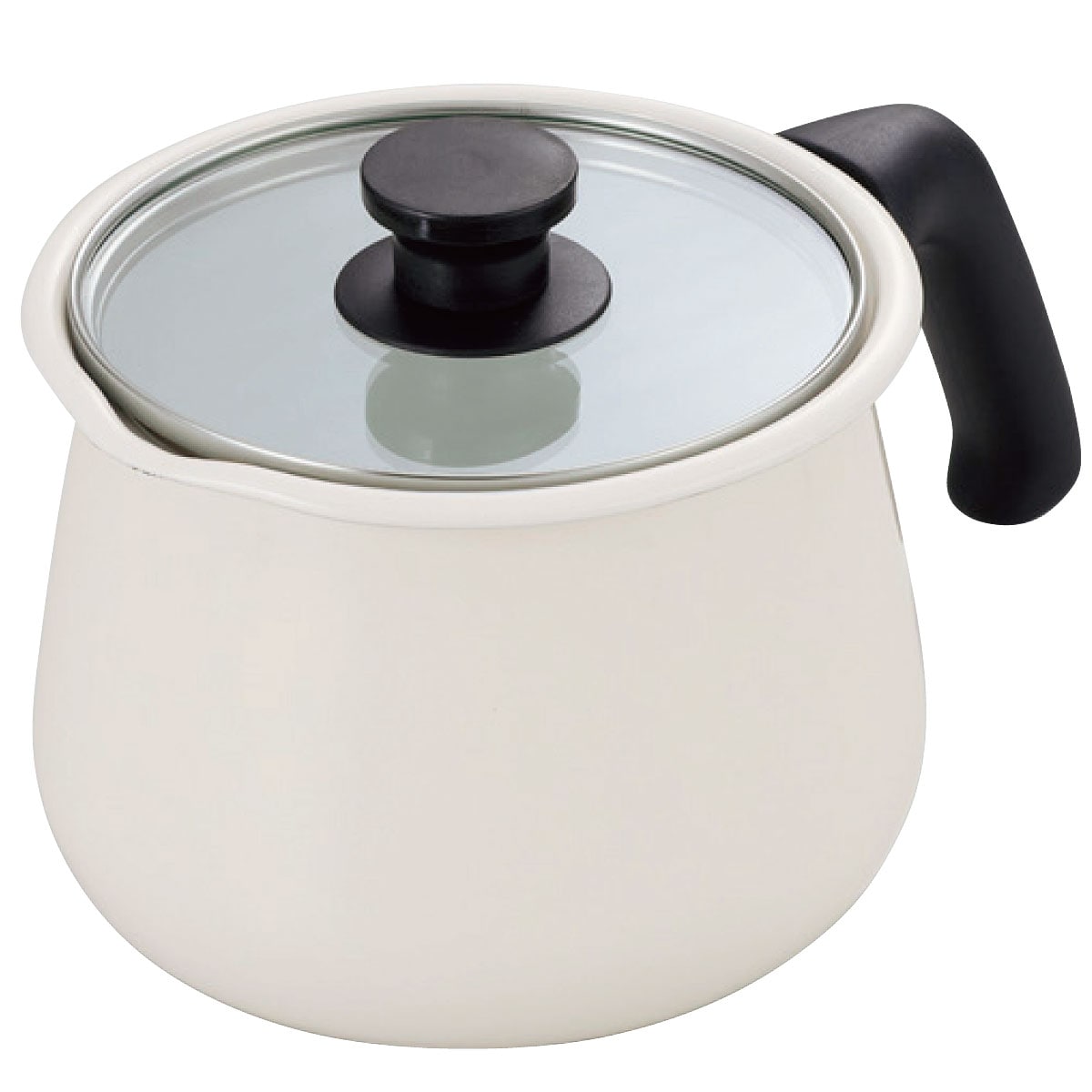 深型でコロンと丸みのあるフォルム。煮る・揚げる・沸かす・炒める・茹でる・炊く・和えると、いろいろな調理がこれ1台で可能。ホーローは表面がつるんとしたガラス質のため、料理の臭いや色が移りにくく、汚れもするんと落ちてお手入れがラク。酸にも強いので、調理した料理をそのまま保存する保存容器としても使えます。蓋をフラット形状にして高さを抑え、下向きの持ち手でかさばりにくい形状のため、冷蔵庫にもすっきりと収まります。調理から保存まで使い勝手のいいコンパクト鍋です。
