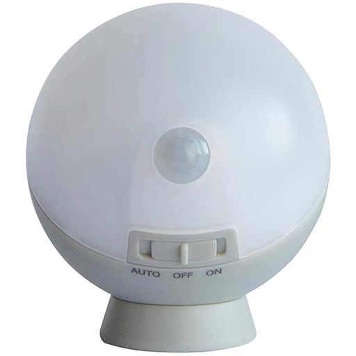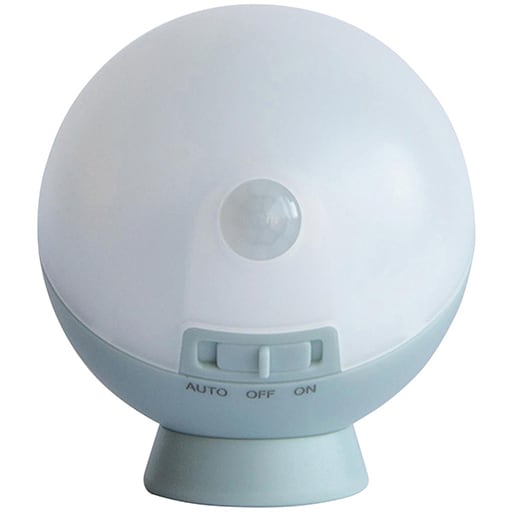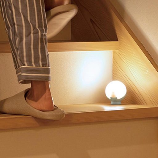 電球色の暖かい光と丸いフォルムで癒やしを与えます。乾電池式だから電源のない場所にも最適なセンサーライト。[明るさ50ルーメン電球色]