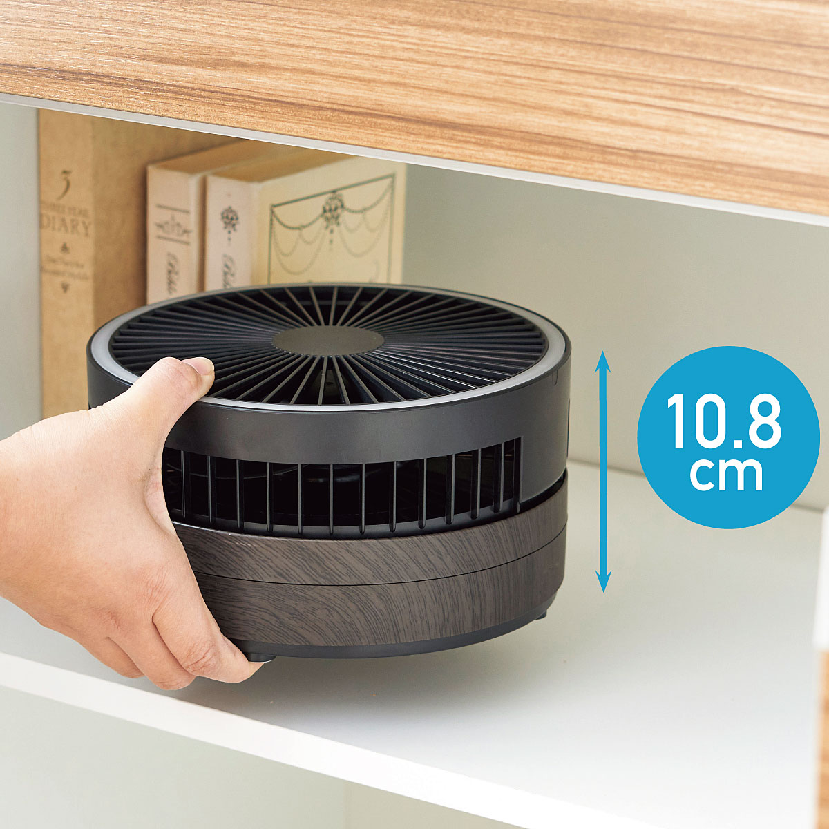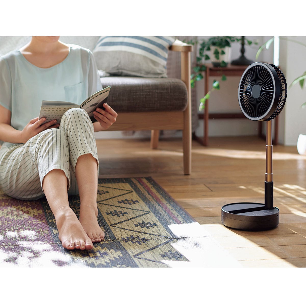 高い位置で使えばリビング扇、縮めたらデスクの上でも使えるマルチファン。充電式コードレスだから、コンセントがない部屋や屋外でも使えます! 最大で約12時間連続使用できます。使う場所に合わせて自在に形を変えられ、ヘッドの角度を上向きにすれば空気循環のサーキュレーターとしてもお使いいただけます。