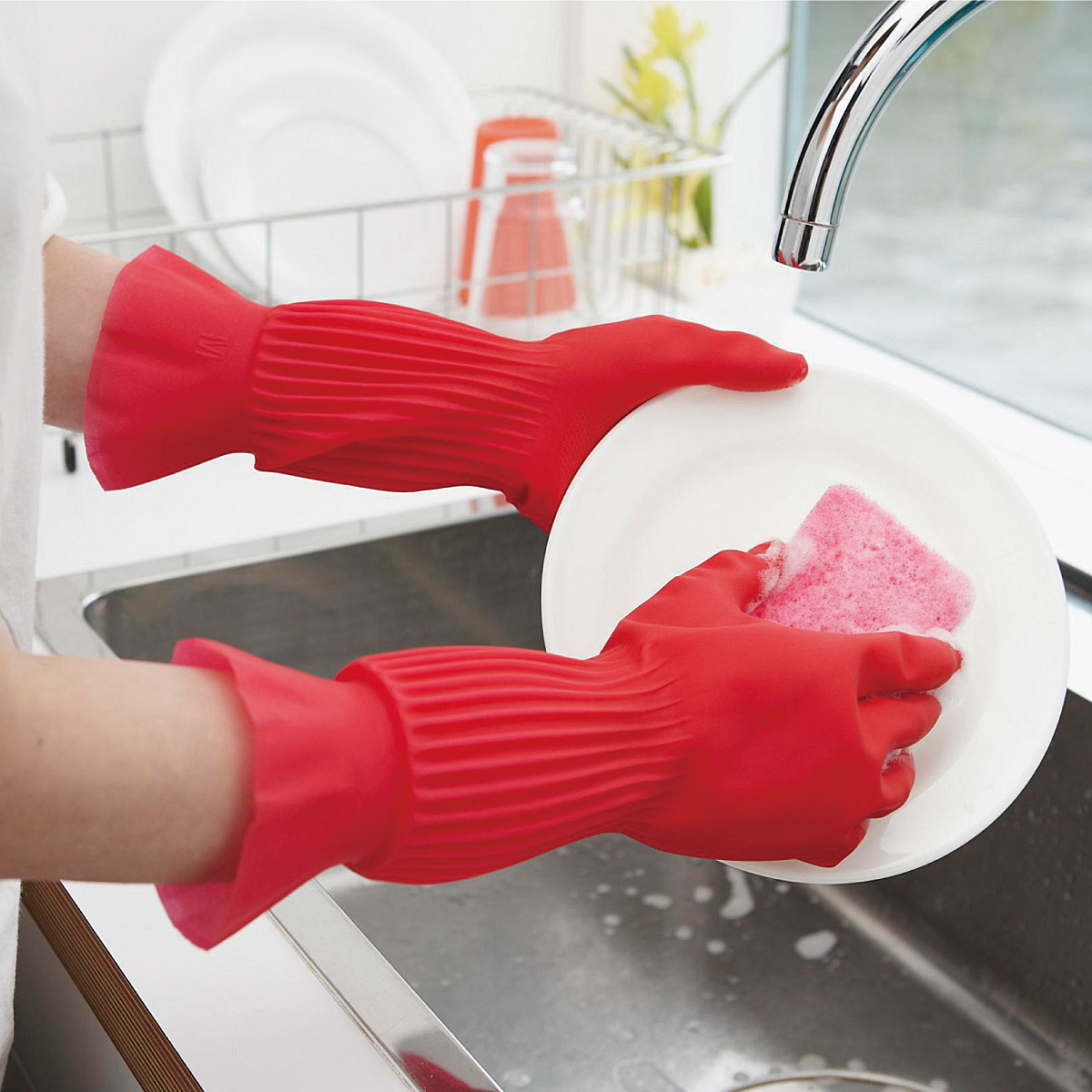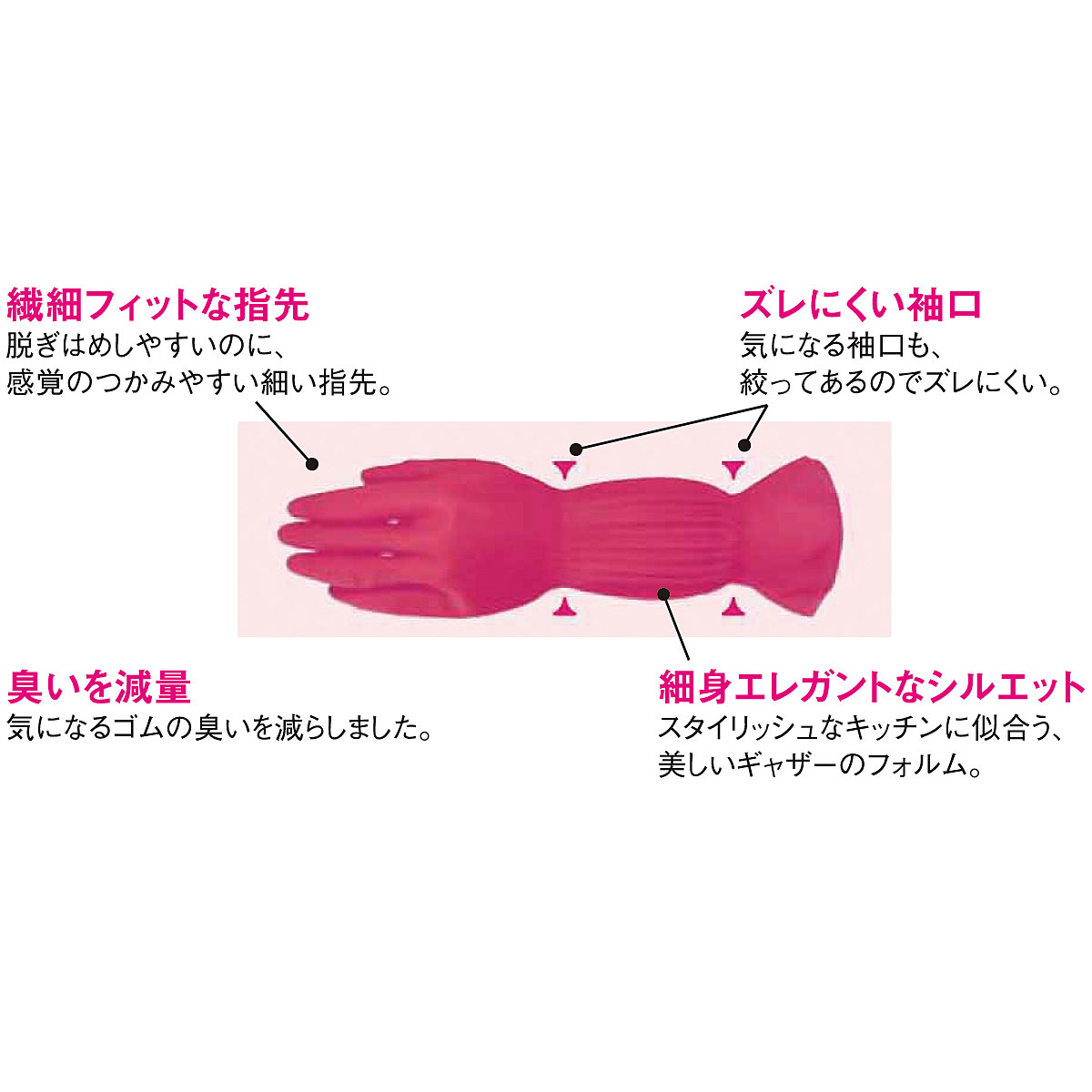 指先ぴったりで細かな作業に最適!ゴムの樹から採取された天然ゴムを主原料とし、地域と手肌への優しさを追及する家庭用手袋。