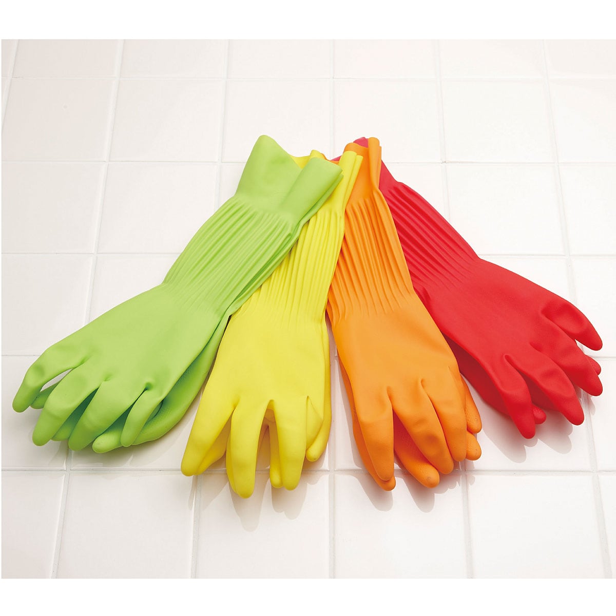 ■表:天然ゴム 裏: 綿(植毛)■サイズ(約cm)/[手のひら周り]S:19 M:20.2 ×[全長]:33(共通)●セット内容/レッド・オレンジ・グリーン・イエロー各1双※天然ゴムを使用していますので、アレルギーをお持ちの方はご使用をお避け下さい。●マレーシア製
