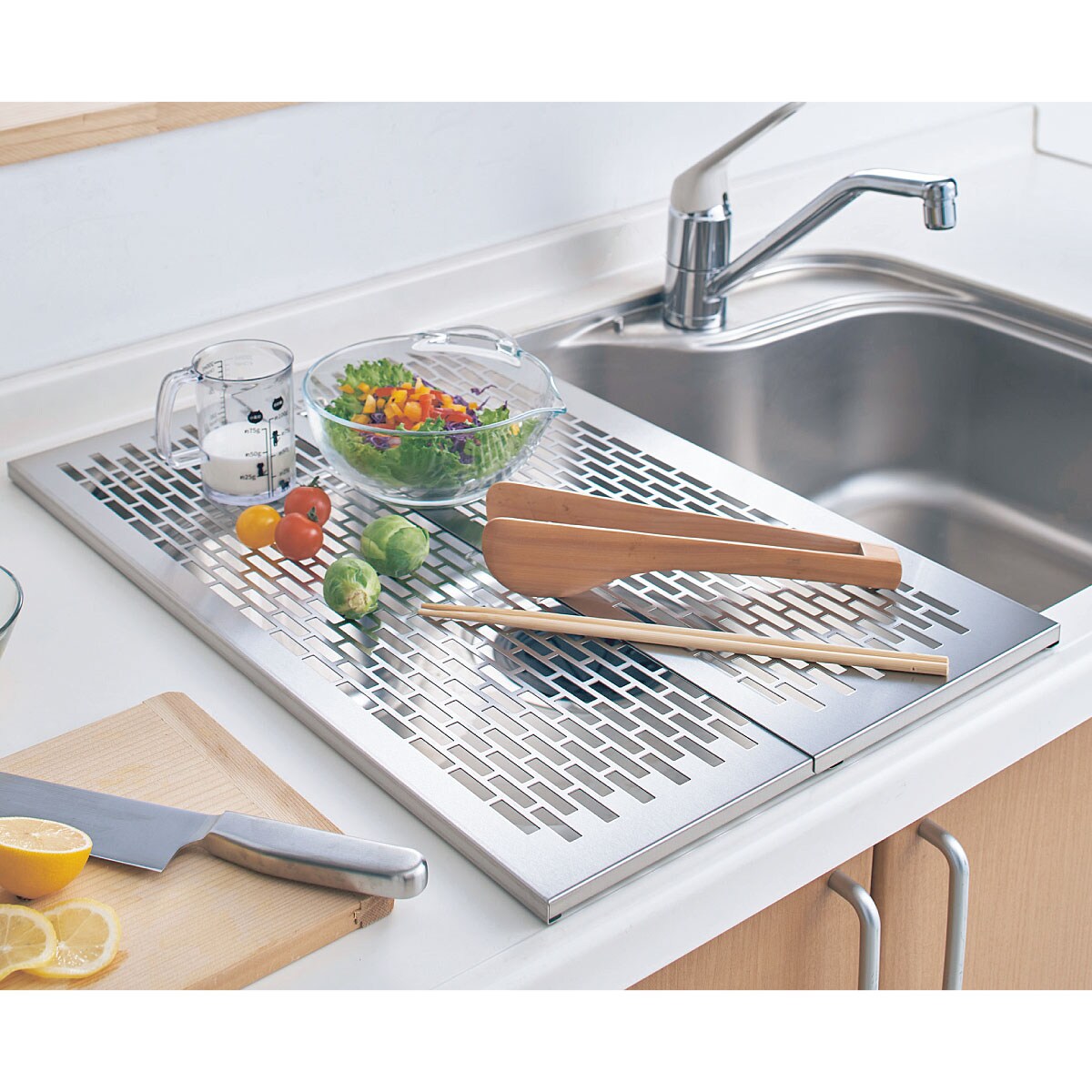 シンクを有効活用! 水切りもできる作業台。