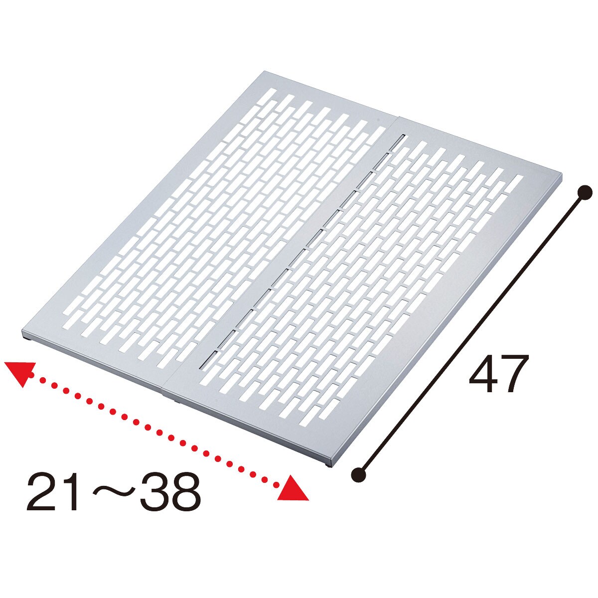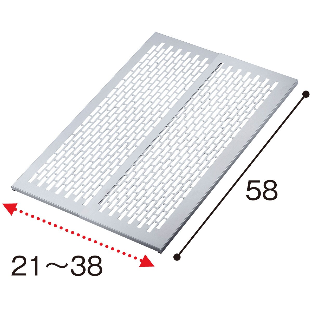 ■[本体]ステンレス [クッションゴム]ポリウレタン ■サイズ(約cm)/21~38×(A:47、B:58)×1.5 ■重量(約g)/[A]880 [B]1070 ■耐荷重/約15kg(A・B共通)●日本製