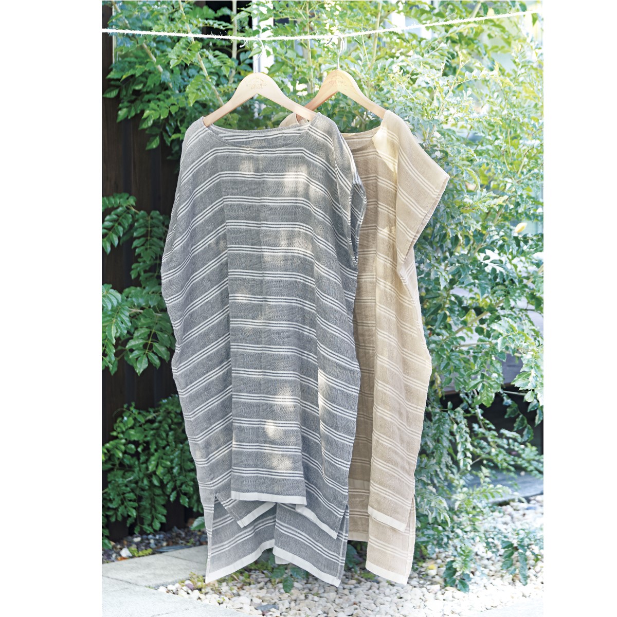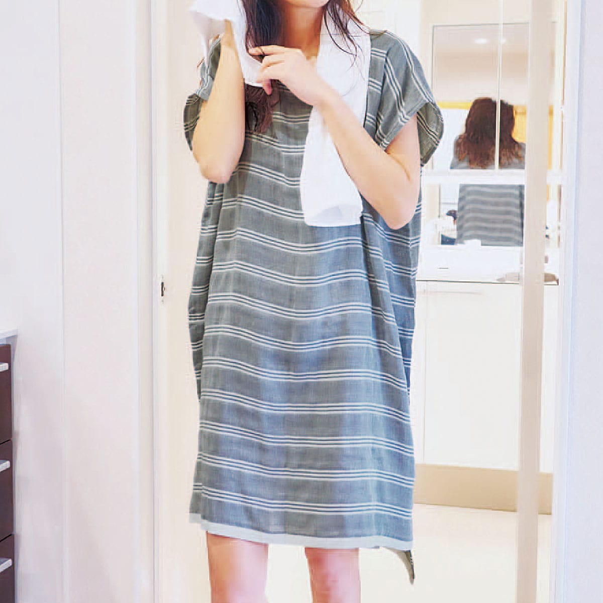 ベージュサッとかぶるだけで、お風呂上がりはもちろん部屋着としても涼しく快適。