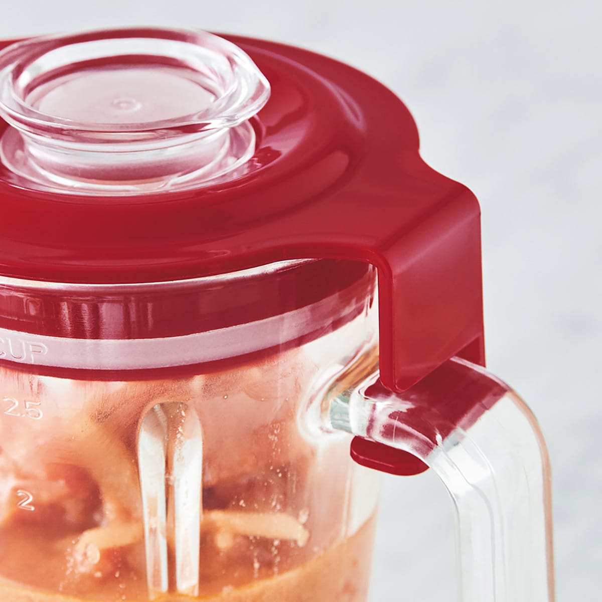 耐熱温度差120℃まで対応できる耐熱ガラス製の[ガラスジャー]を採用し、炒めた野菜や煮込んだ食材もアツアツのまま撹拌できるブレンダーなので、食材を混ぜたあとに温め直す必要がなく、時短調理が叶います。※家庭用製氷機で作った2.5cm角以下の氷なら一度に10粒まで撹拌できます。氷や冷凍フルーツのみでの撹拌はできません。必ず水分(液体)と一緒に撹拌してください。ドライアイス、市販のかたい氷は使用できません。
