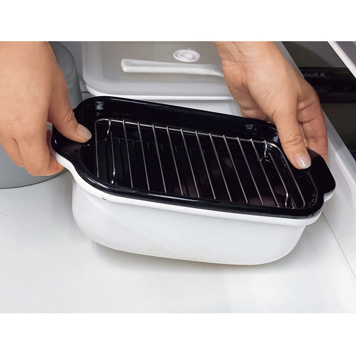 長めの食材も揚げやすい! ホーロー製の角型揚げ鍋!