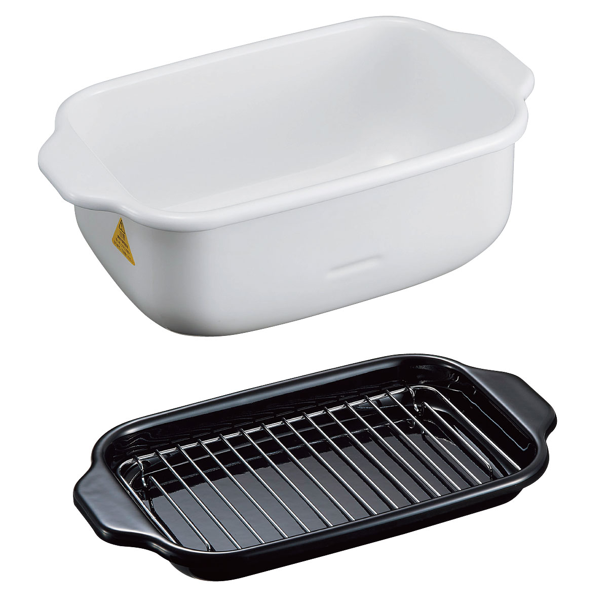 長めの食材も揚げやすいホーロー製の角型揚げ鍋。